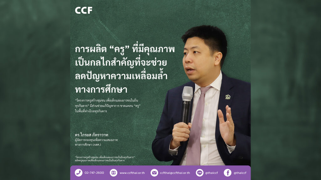 มูลนิธิ ซี.ซี.เอฟ.ฯ และกองทุนเพื่อความเสมอภาคทางการศึกษา (กสศ.) ผสานพลังความร่วมมือ “โครงการครูสร้างชุมชน เพื่อเด็กและเยาวชนในถิ่นทุรกันดาร”