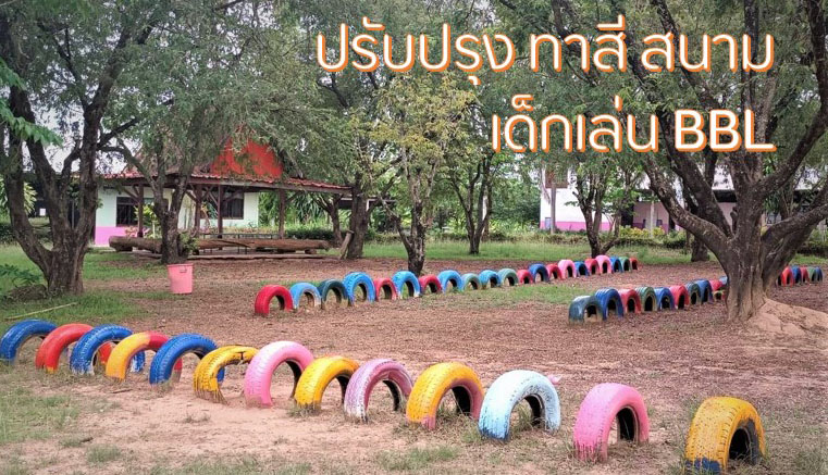 ยางรถระบายสีสดใส เยาวชนจิตอาสาทำดี ซี.ซี.เอฟ. ร่วมใจปรับปรุงสนามเด็กเล่น BBL