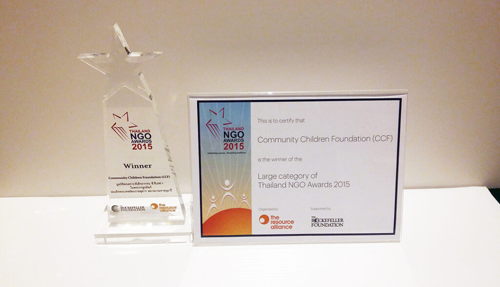มูลนิธิ ซี.ซี.เอฟ. ชนะเลิศรางวัลองค์กรพัฒนาเอกชนแห่งประเทศไทย ประจำปี พ.ศ. 2558 (Thailand NGO Awards 2015)